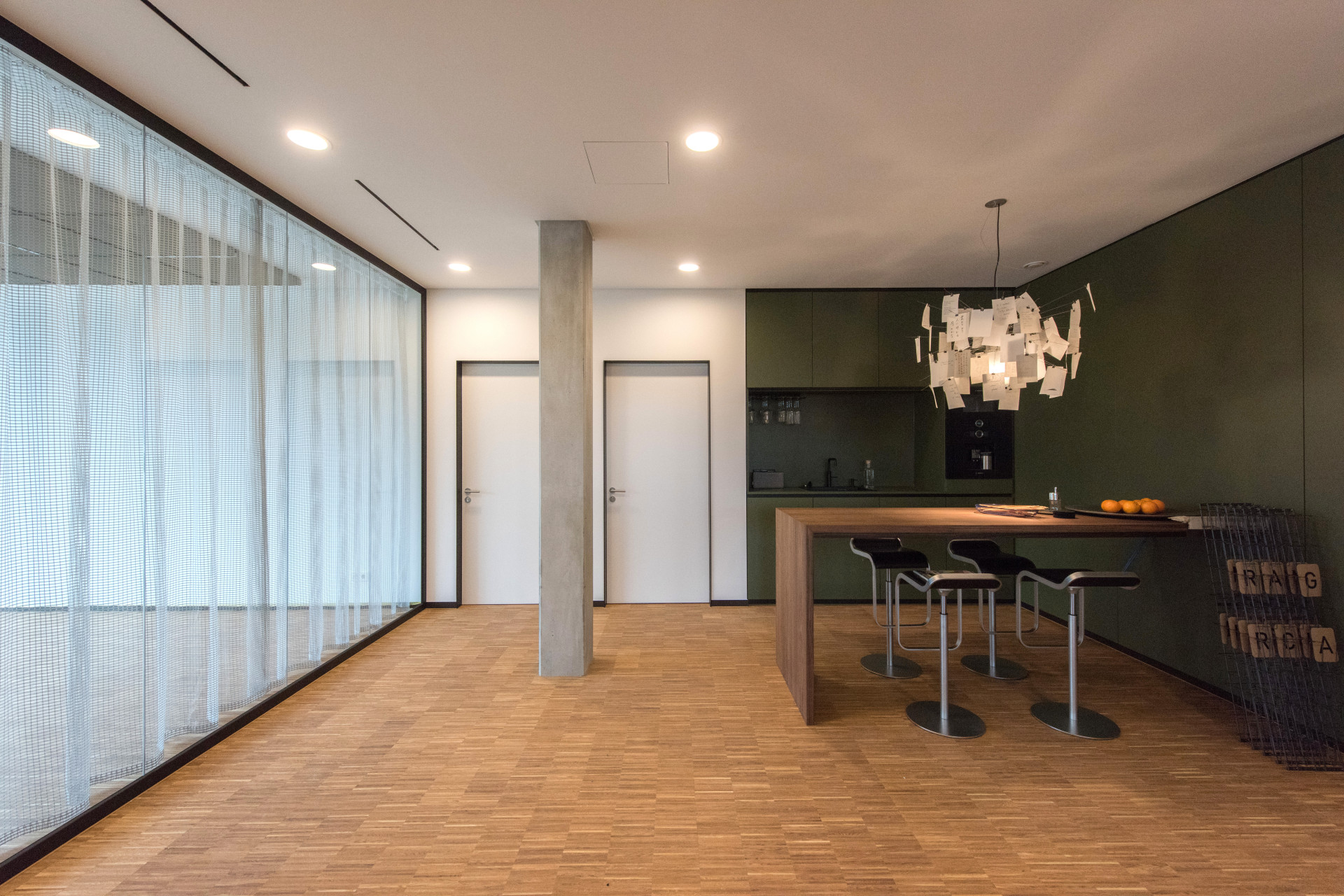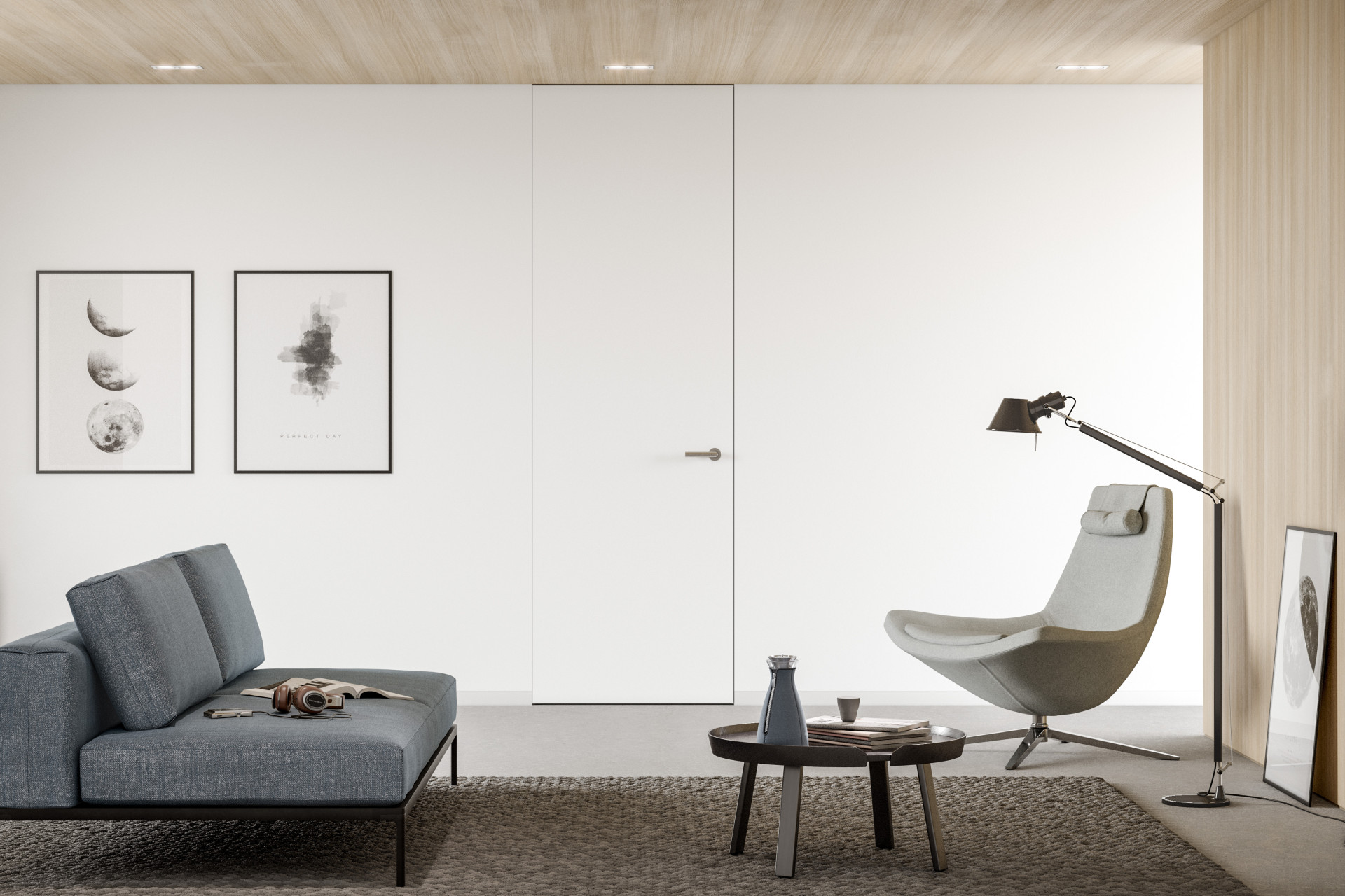Weniger ist mehr. Unsichtbare Türen – flächenbündig und rahmenlos, mit schmaler Fuge abgegrenzt.