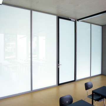 Küffner lieferte die Rahmentüren aus Aluminium die größtenteils „schwebend“ in Verglasungen eingesetzt wurden.